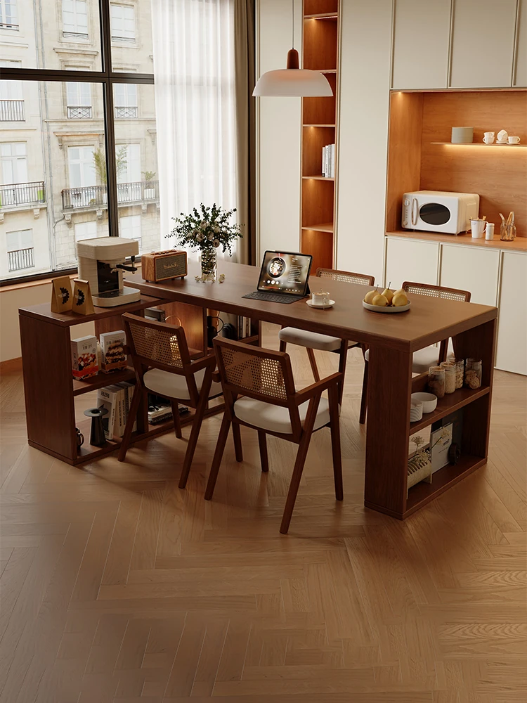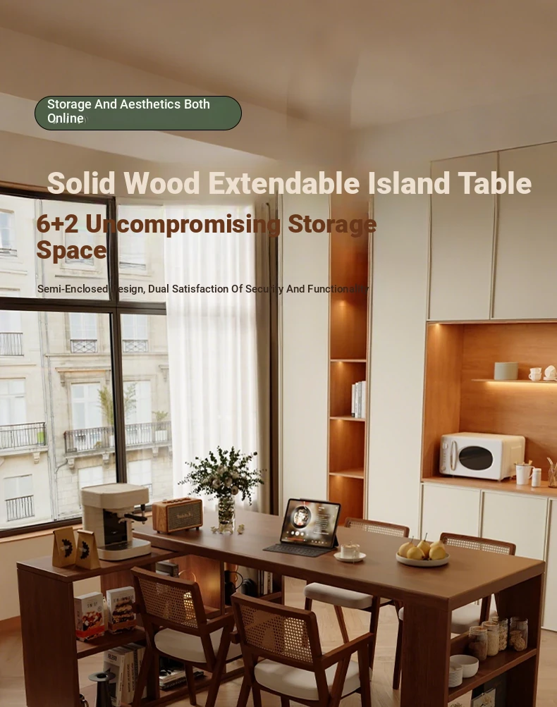 2025 New Walnut Solid Wood Island Dining Table - Versatile Expandable Bar & Tea Table for Living Room, Perfect for Entertaining & Dining in Style!