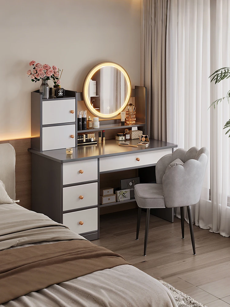 Modern Minimalist Vanity Table with Mirror for Small Bedrooms - Trendy Makeup Desk for Compact Spaces, 2025 New Arrival