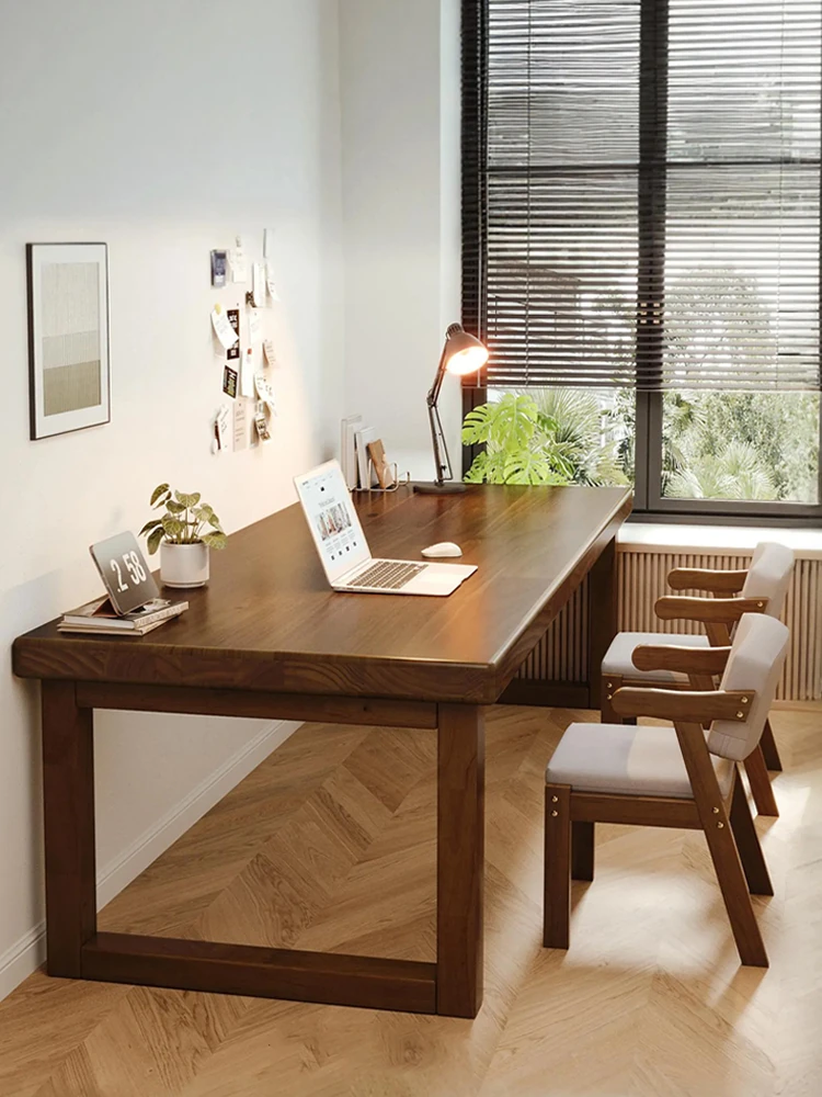 Solid Wood Computer Desk - Spacious Home Office Writing Table for Bedroom - Long Rectangular Double Workstation for Collaborative Learning and Productivity