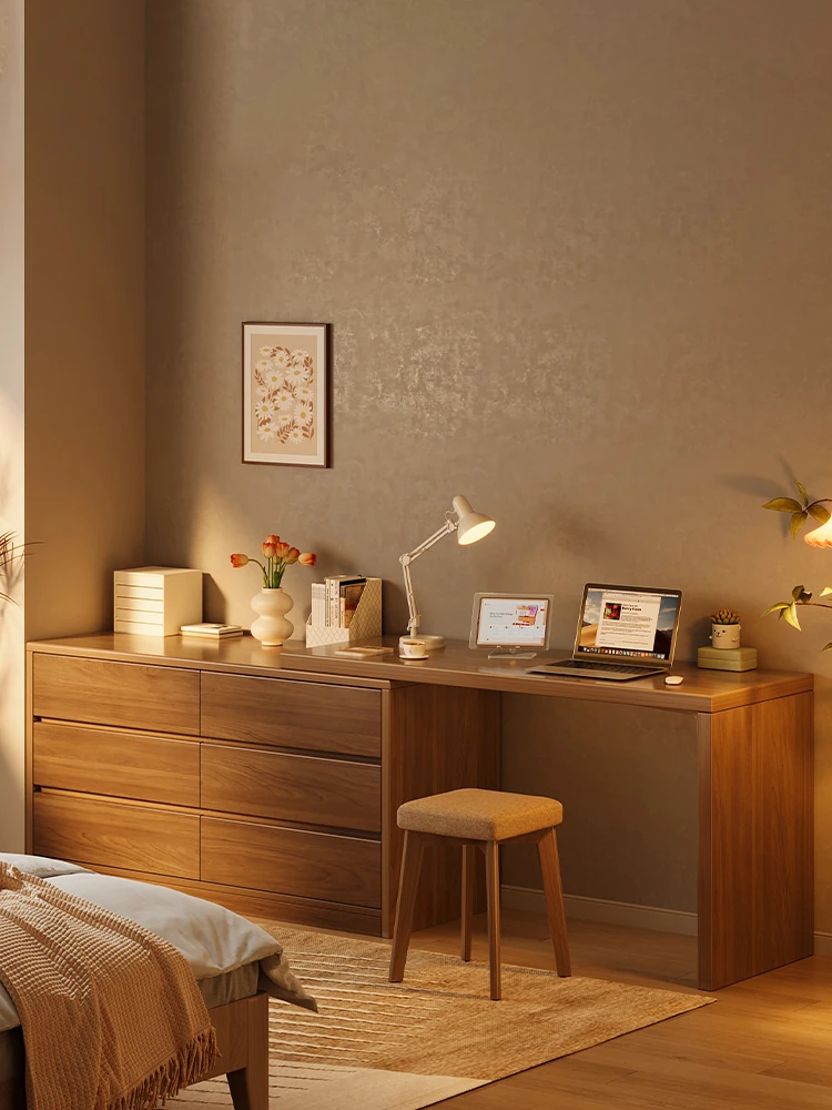Modern Luxury Solid Wood Desk and Vanity Combo for Small Spaces – Stylish Makeup Table for Adult Bedrooms, Perfect for Women’s Home Use