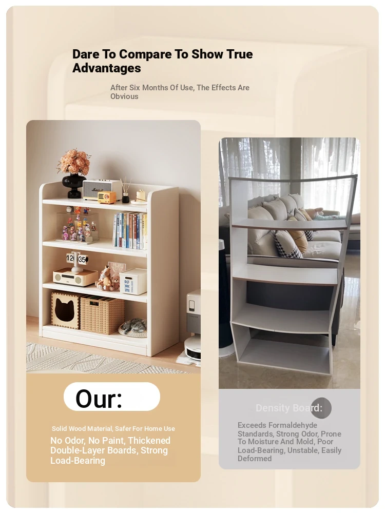 Elegant Solid Wood Bookshelf - Multi-Tiered Floor Storage Cabinet for Home, Wall-Mounted Organizer, Ideal for Students and Book Lovers, Stylish and Functional Shelving Unit