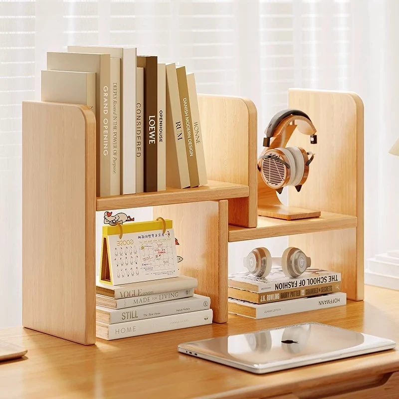 Elegant Solid Wood Desktop Organizer Shelf - Expandable Corner Storage Rack for Office Desk, Multi-Layer Simple Small Bookshelf for Efficient Workspace Organization