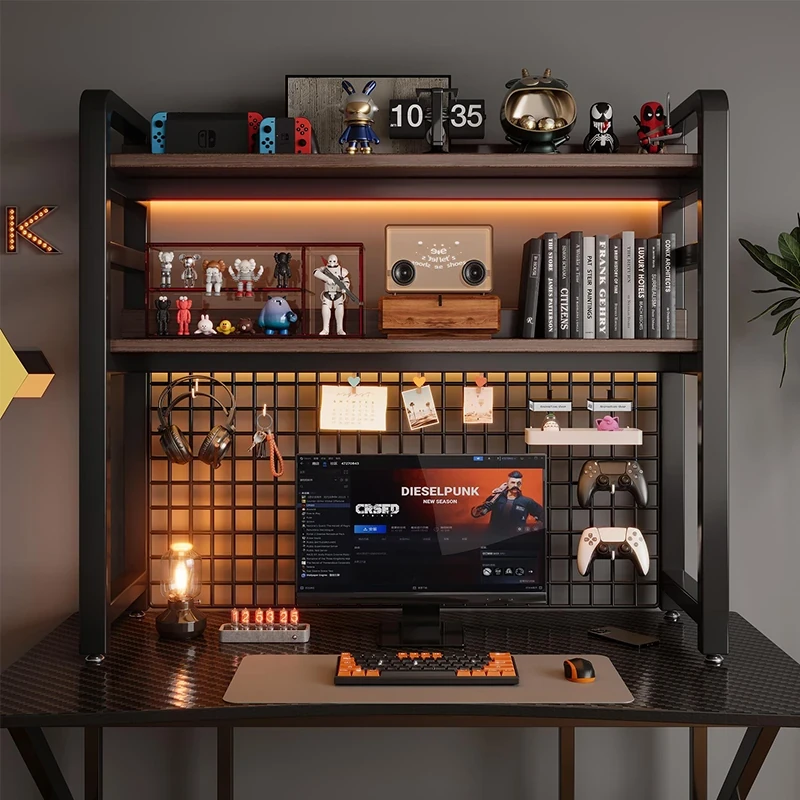 Gaming Desk Organizer - Multi-Layer Desktop Storage Rack with Pegboard for Home Office, Perfect for Computer Desks and Study Spaces, Stylish and Functional Bookshelf for Enhanced Workspace Decor