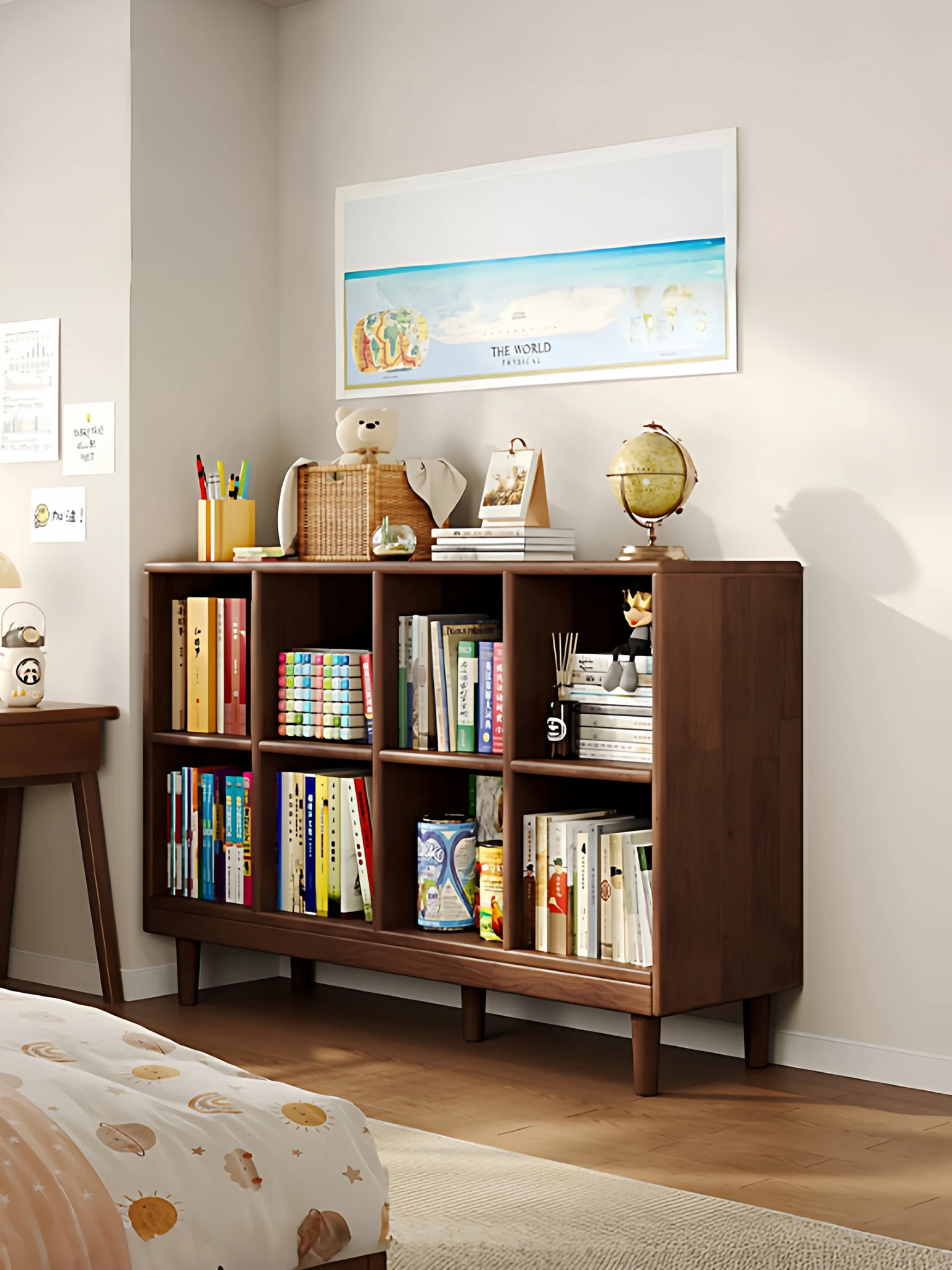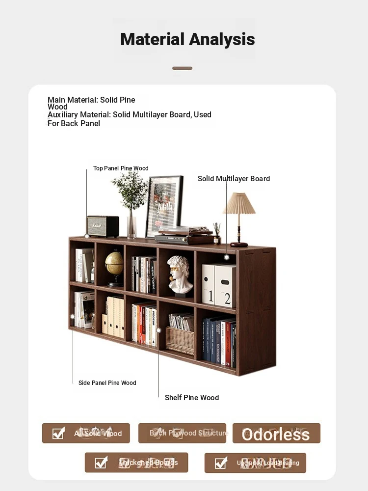 Solid Wood Bookshelf and Storage Cabinet - Versatile Cube Organizer for Living Room, Wall-Mounted Low Cabinet, Home Floor Standing Combination Storage Rack