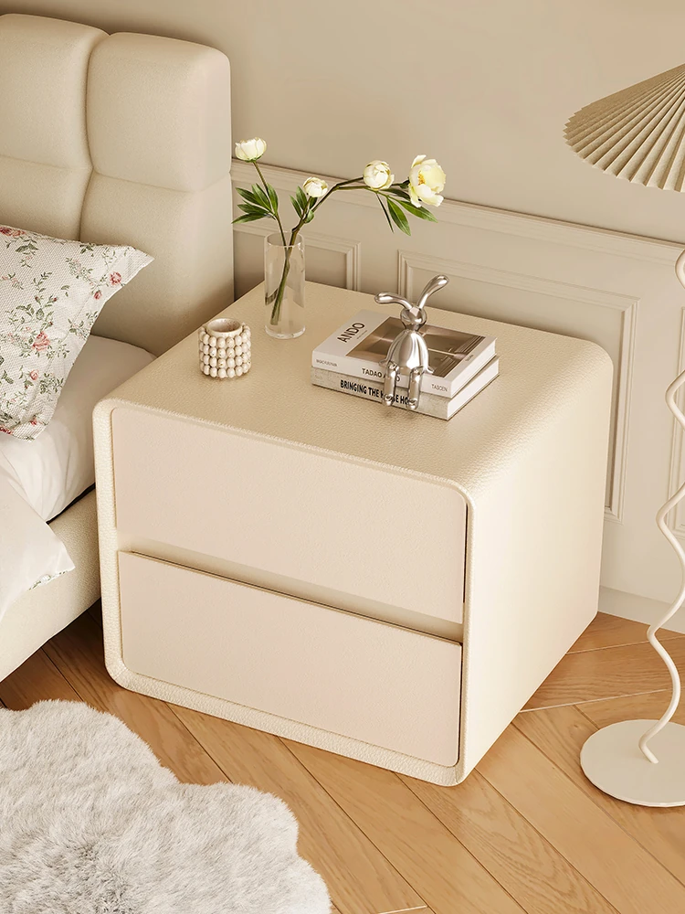 Elegant Cream Wood Nightstand for Home Bedroom - 2025 New Luxury Minimalist Modern Storage Bedside Cabinet