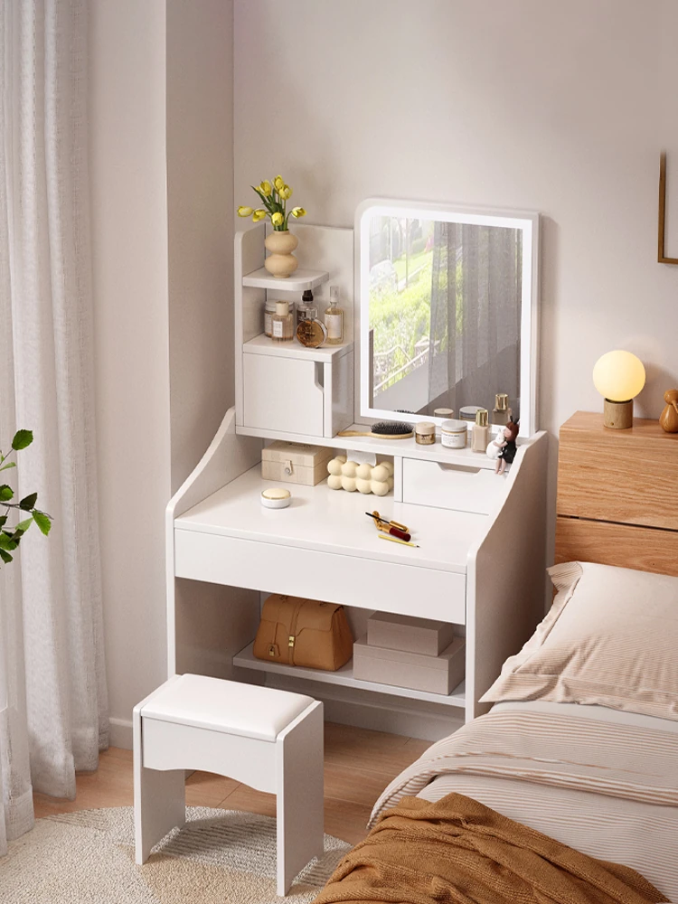 Compact Modern Makeup Vanity with Storage - Ideal for Small Bedrooms and Mini Apartments, Perfect for Makeup Organization and Stylish Décor.
