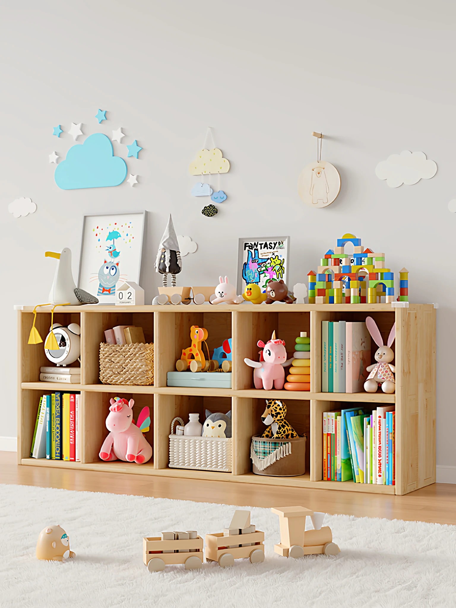 Kids Toy Storage Cabinet - Solid Wood Bookshelf for Nursery - Floor Standing Organizer with Cubes for Toys and Backpacks - Perfect for Playrooms and Classrooms