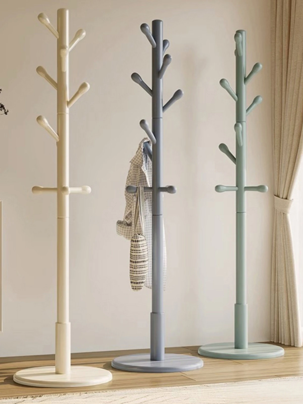 Stylish Cream-Colored Wooden Freestanding Clothes Rack - Elegant Bedroom and Living Room Coat Hanger, Perfect for Hanging Clothes and Bags, Ideal for Home Use