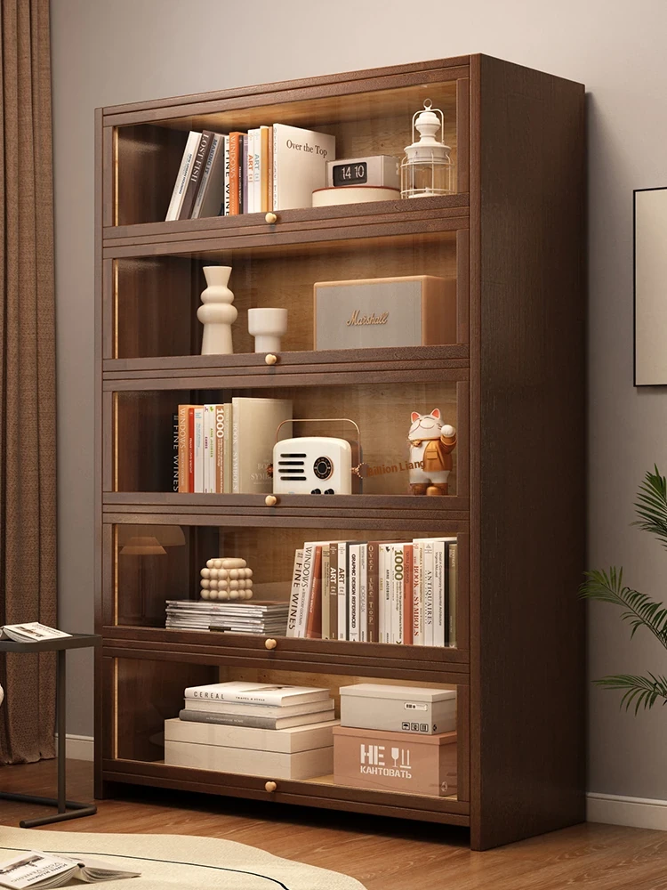 Vintage Solid Wood Bookshelf - Floor-to-Ceiling Wall-Mounted Storage Rack with Doors, Dust-Proof, Multi-Layer Organizer for Books and Decor - Perfect for Any Space!