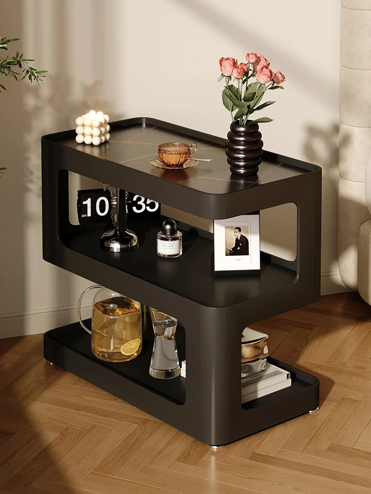 Modern Luxury Bedside Storage Shelf - Movable Corner Nightstand with Side Table for Bedroom, Perfect for Organizing Essentials and Enhancing Your Space