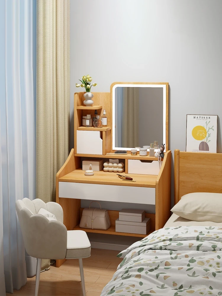 Compact Modern Makeup Vanity Table for Small Bedrooms - Stylish 60cm Nightstand Design Perfect for Mini Apartments and Master Suites
