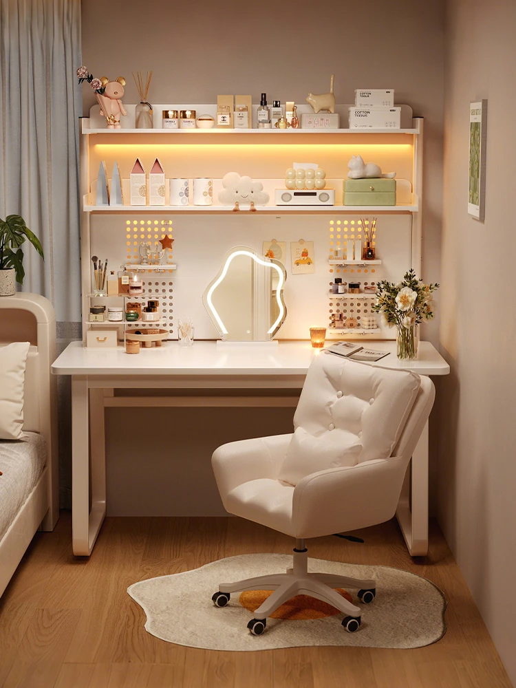 Modern Minimalist Iron Vanity Desk Combo - Stylish Dual-purpose Makeup Table and Computer Desk for Girls' Bedrooms, Perfect for Organizing Your Space!