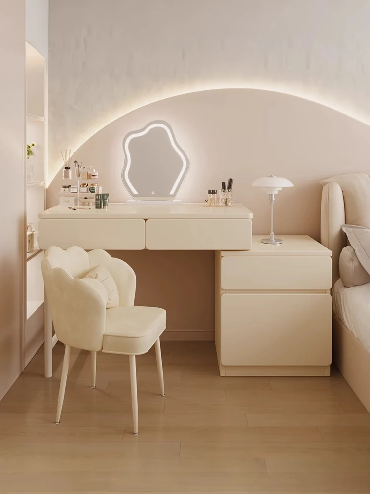 Modern Cream-Colored Makeup Vanity with Nightstand Combo - Minimalist Dressing Table for Women’s Master Bedroom, Elegant and Functional Makeup Dresser