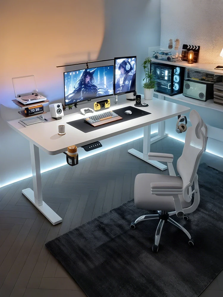 White Electric Height Adjustable Computer Desk - Versatile Home Office Table, Gaming Desk for Bedroom, Portable and Easy-to-Use Workstation
