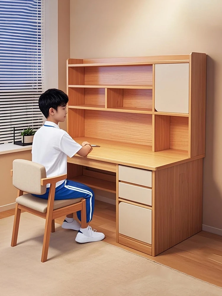 2025 New Solid Wood Study Desk and Bookshelf Combo for Students - Ideal for Home and Bedroom Learning, Perfect Computer Desk for Primary and Secondary School Kids