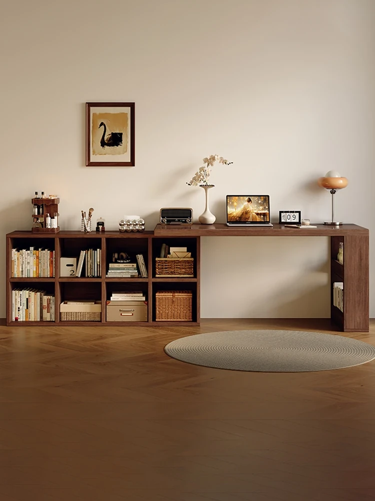 Multipurpose Solid Wood Desk for Students - Versatile Home Study Table with Integrated Bookshelf, Extendable Computer Workstation, Perfect for Living Room Use