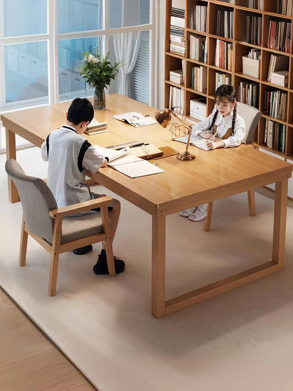 Stylish Solid Wood Double Desk for Students - Minimalist Home Computer Study Table, Long Office Desk, Perfect for Bedrooms and Workspaces