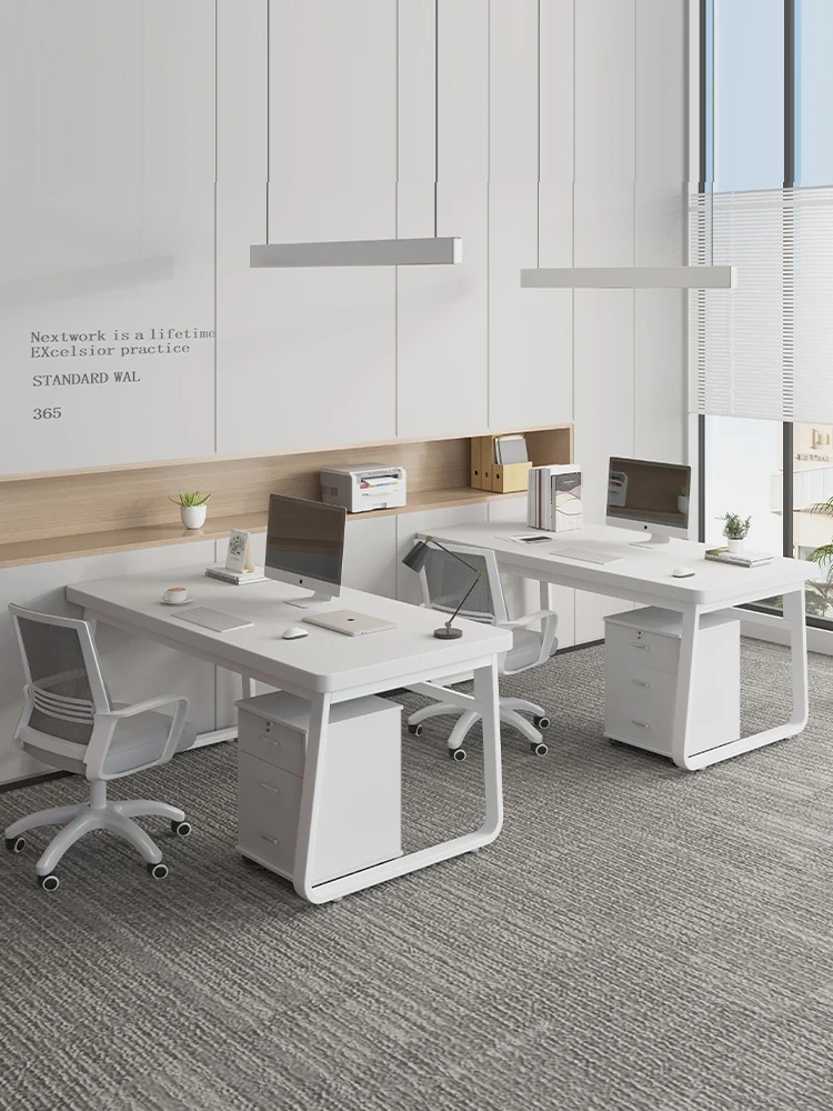 Modern Minimalist Office Desk Set for 2 - Ergonomic Workstation with Drawers for Home and Office, Perfect for Employees and Collaborative Spaces