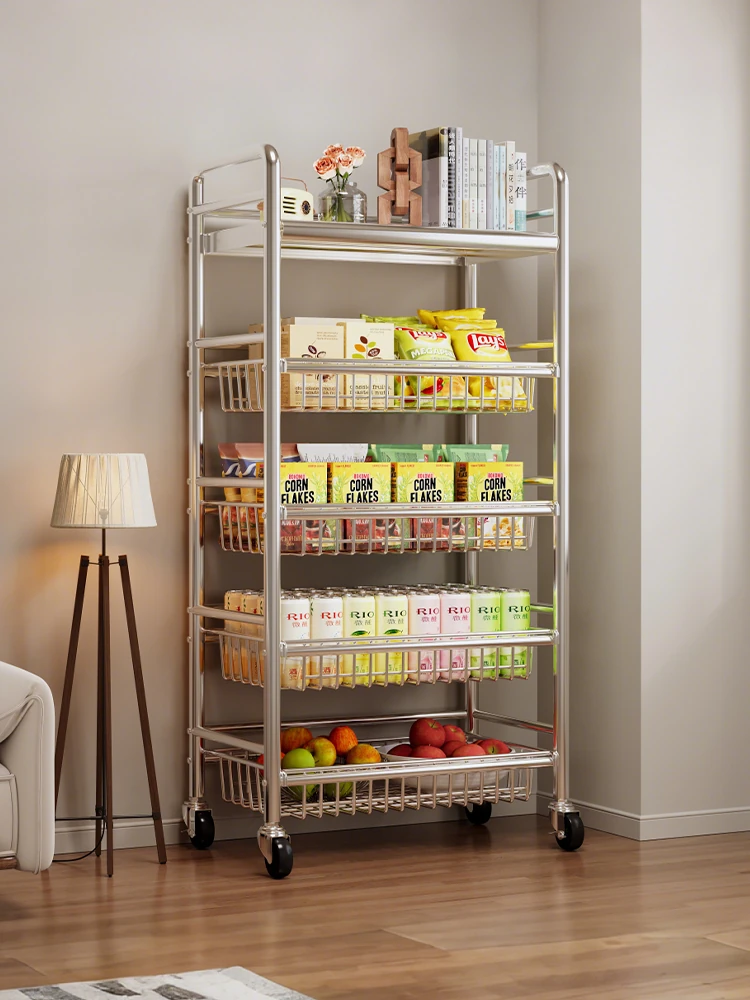Multi-Layer Stainless Steel Rolling Cart for Living Room – Versatile Floor Storage Rack with Wheels, Perfect for Kitchen Organization and Easy Mobility