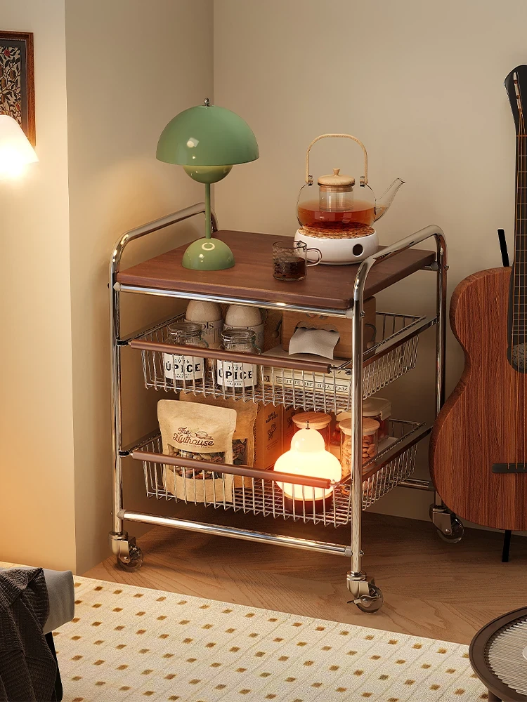 Vintage Style Multi-Layer Rolling Cart - Versatile Floor Bookshelf and Snack Storage Cabinet for Easy Mobility Next to Sofa, Perfect for Organizing Your Space!