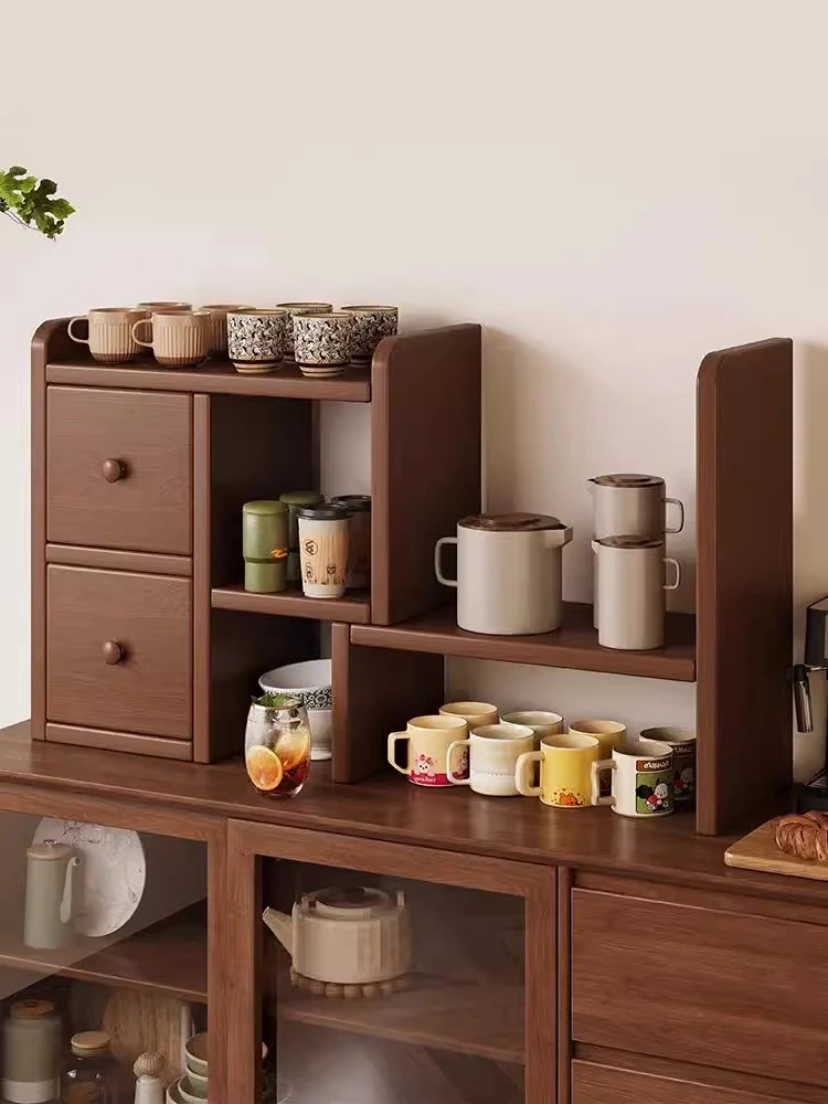 Solid Wood Desktop Cup Holder - Stylish Storage Rack for Tea Sets and Coffee Mugs - New Chinese Style Organizer for Your Tabletop