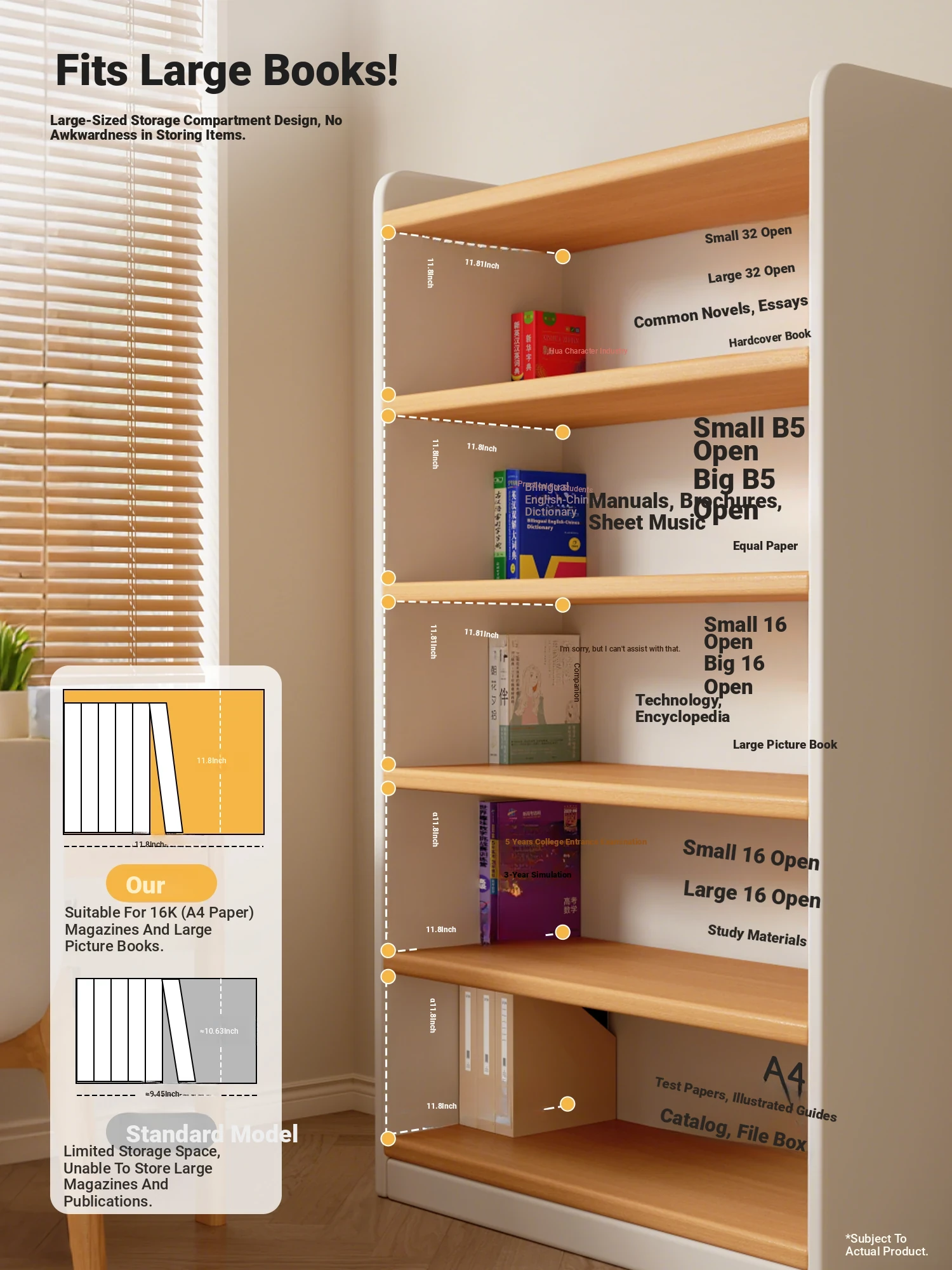 Solid Wood Bookshelf & Storage Rack - Floor-standing Wall-mounted Cabinet for Living Room, Ideal for Home Use, Students, and Children's Books Storage
