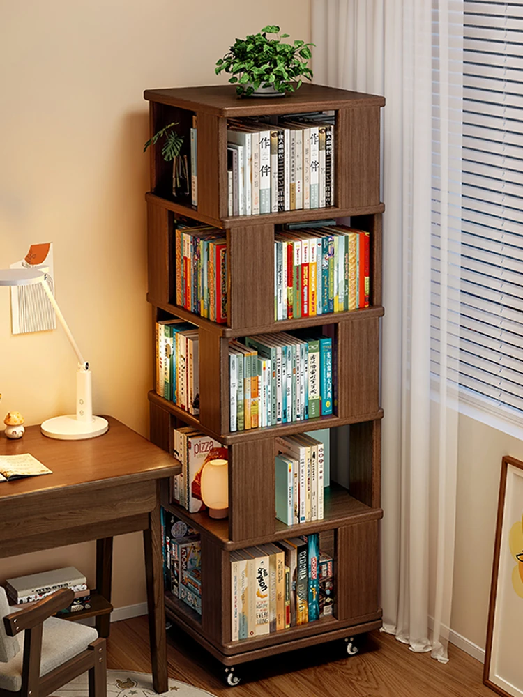 360-Degree Rotating Solid Wood Bookshelf - Movable Corner Storage Cabinet, Ideal for Home Use, Slim Design for Efficient Space Utilization