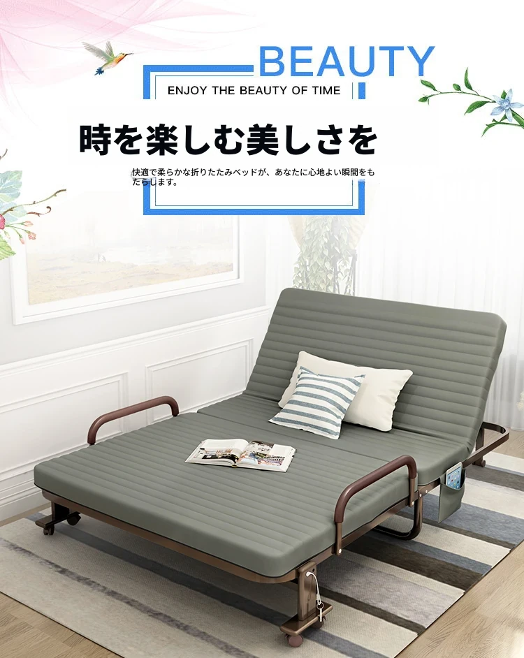 折りたたみ式オフィス用お昼寝ベッド!家庭用・大人向け 1.2m シングルお昼寝ベッド、簡易病院用付き添いベッド。快適で便利、どこでもリラックスできる!