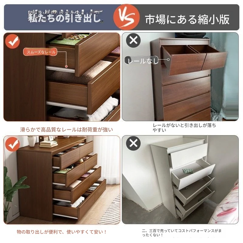 シンプルでモダンな実木製の五斗棚収納キャビネット - 寝室やリビングにぴったりの壁掛けスタイル、便利な引き出し付きで収納力抜群!あなたの暮らしをもっと快適に。
