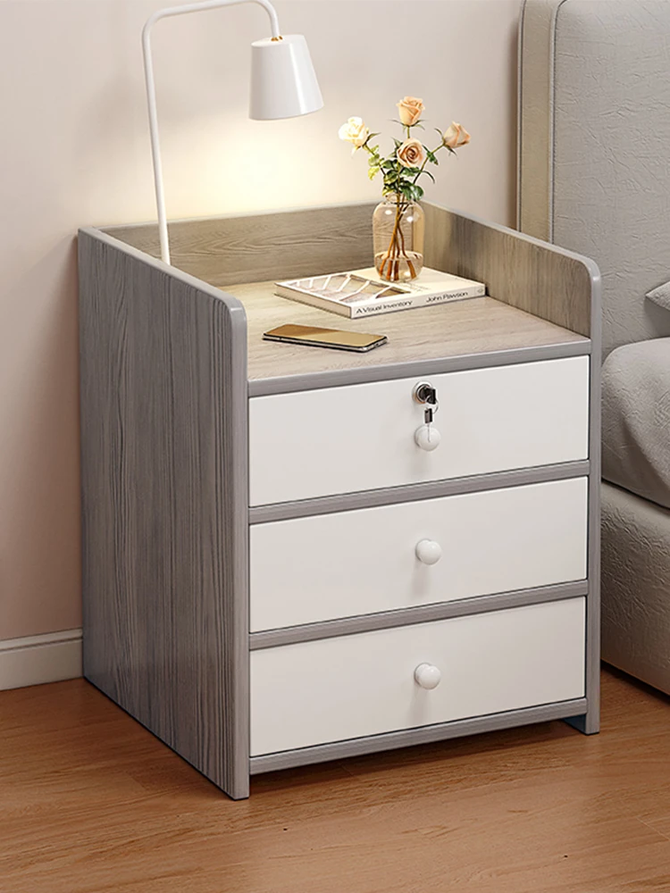 シンプルモダンなロック付き小型ナイトテーブル - 家庭用ベッドサイド収納キャビネット、ウォールサポートの低型収納棚で、スッキリとした空間を演出!