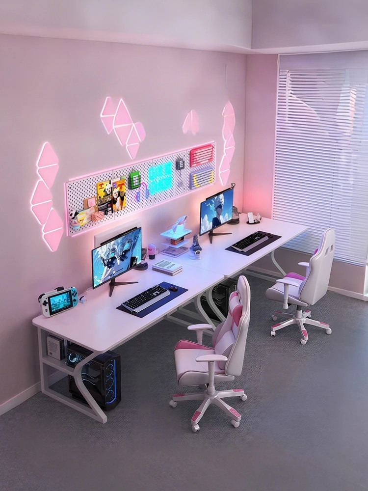 ホワイトデュアルゲーミングデスク|PCデスク・タワー設置可・メカアーム対応|寝室・家庭用・作業台に最適!快適なゲーム環境を実現!