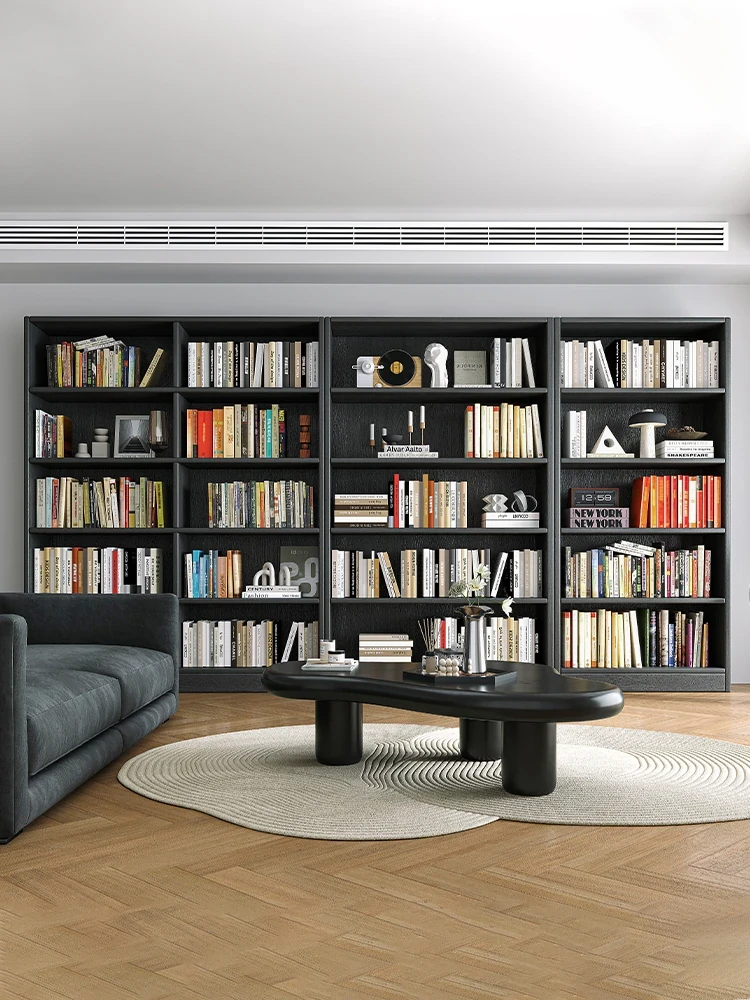 壁面一体型無垢材書棚 - 自由に組み合わせ可能な家用フロアスタイルの全壁展示キャビネット。リビングルームをおしゃれに演出し、収納力抜群!
