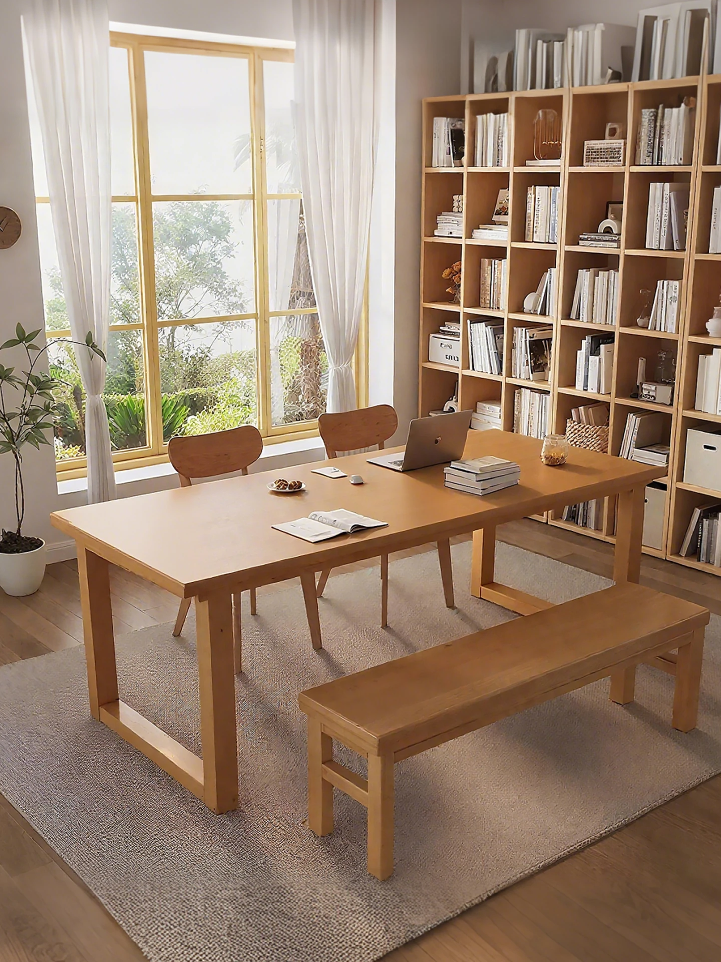 無垢材使用のシンプルでモダンな書斎デスク|家庭用・オフィス用に最適|広々としたロングデスクで快適な作業空間を実現!リビングにもぴったりなデザイン。