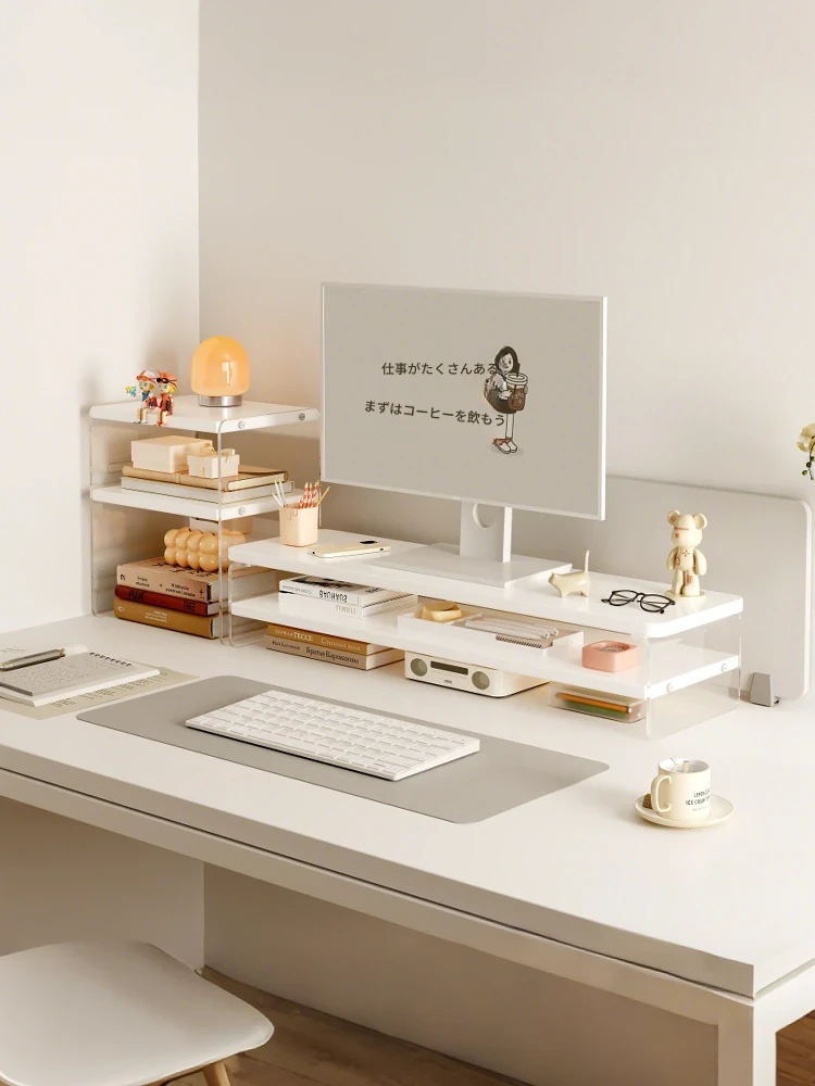 デスクトップモニター用昇降スタンド - オフィスの収納力をアップ!作業スペースをスッキリ整理し、快適な作業環境を実現する必需品!