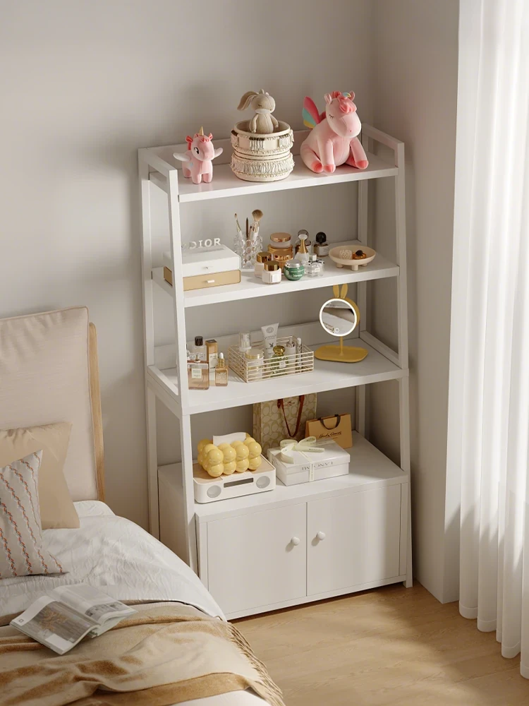 窓辺の多段収納ラック - ベッドサイドに最適なアイアン製の化粧品ディスプレイシェルフ!収納力抜群で、あなたのスペースをおしゃれに演出します。